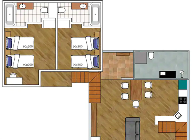 • King size bed (180 cm) or two single beds (90 cm)